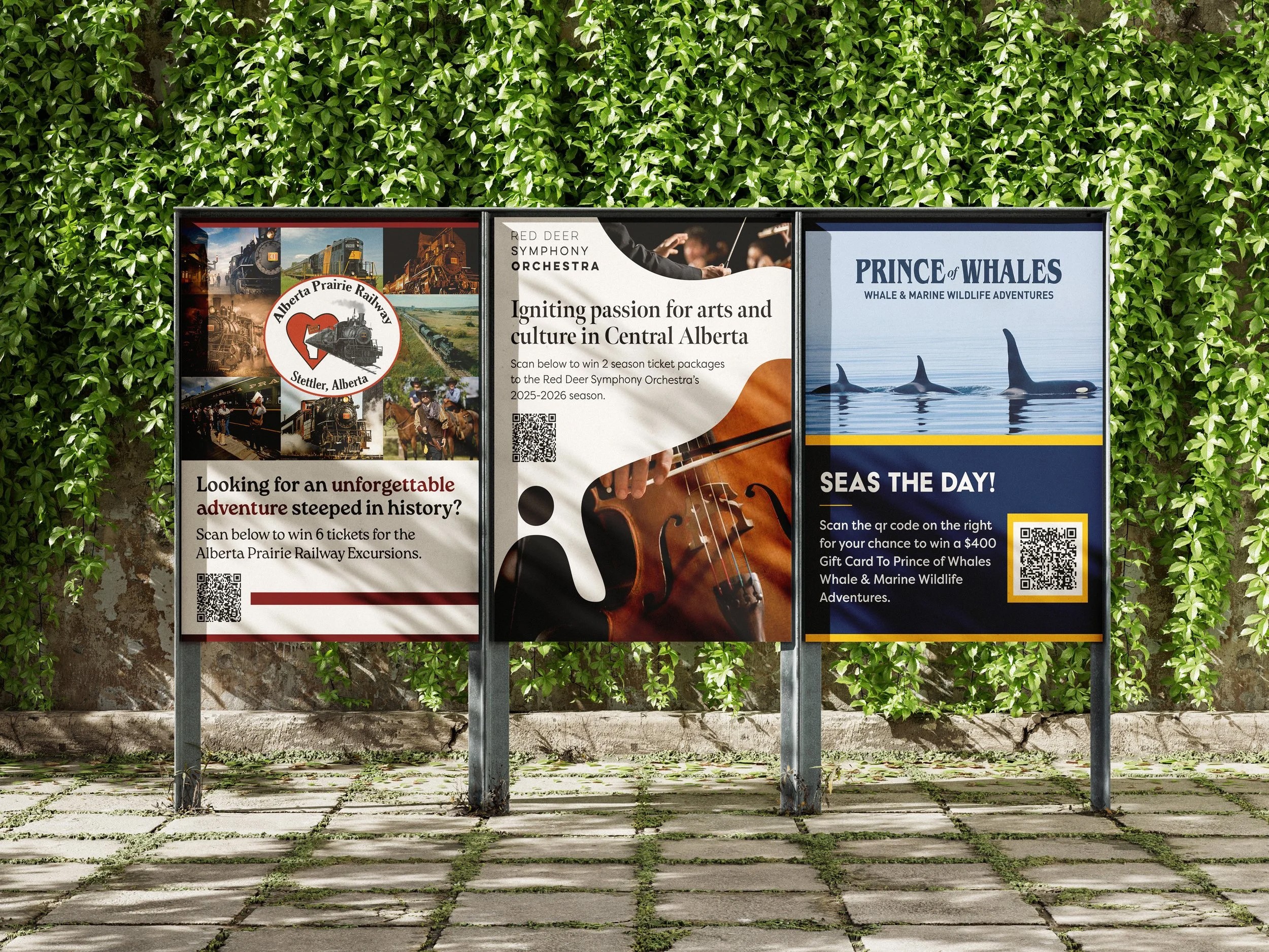 For the Career Expo, the design focused on a relatable and motivating message aimed at people feeling lost or uncertain about their career path. A figure walking toward a bright light captured that sense of hope and new opportunity, while the Raleway font and bold green color palette kept everything cohesive with the existing branding. For the Y@H Expo posters, each one was tailored to reflect the personality of its company. The whale watching poster went bold and clean with a navy and yellow palette, the symphony poster took an abstract and artistic approach with shapes inspired by the cello, and the railway poster kept things simple and let the imagery do the talking.
